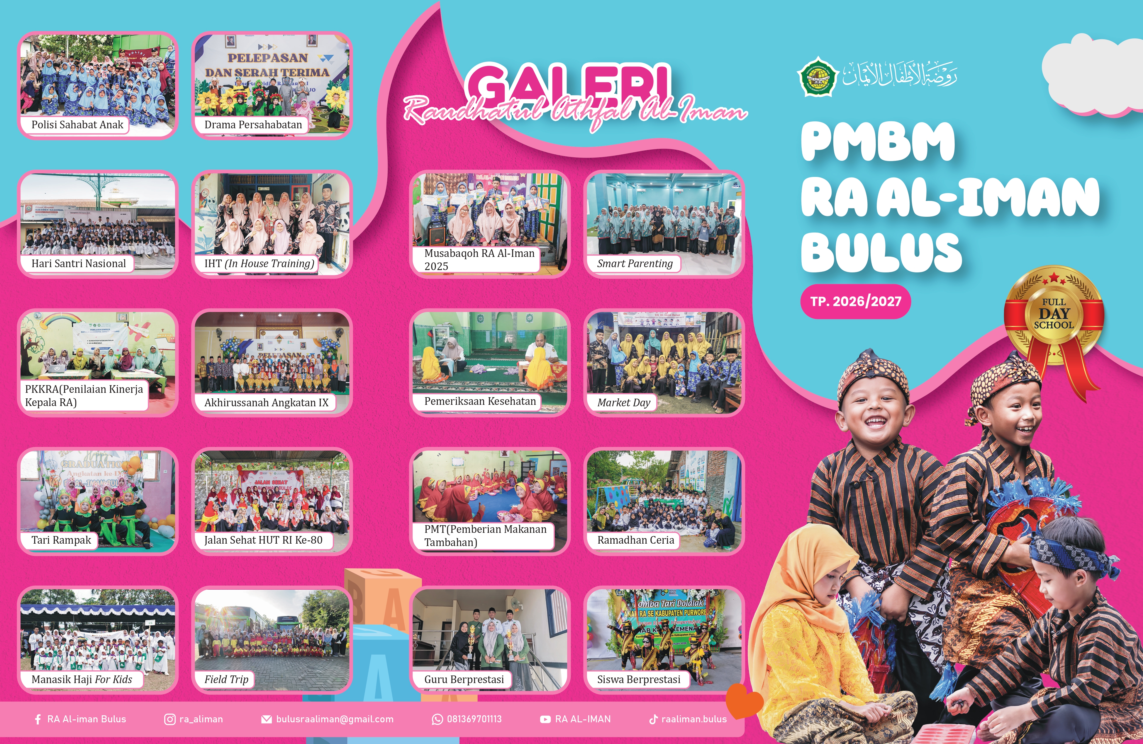 Ekstrakurikuler RA Al-Iman Bulus dilaksanakan berdasarkan hasil assessment diagnostik yang telah dilakukan bertahap setiap tahun. Informasi yang didapatkan sebagai dasar pembuatan progr