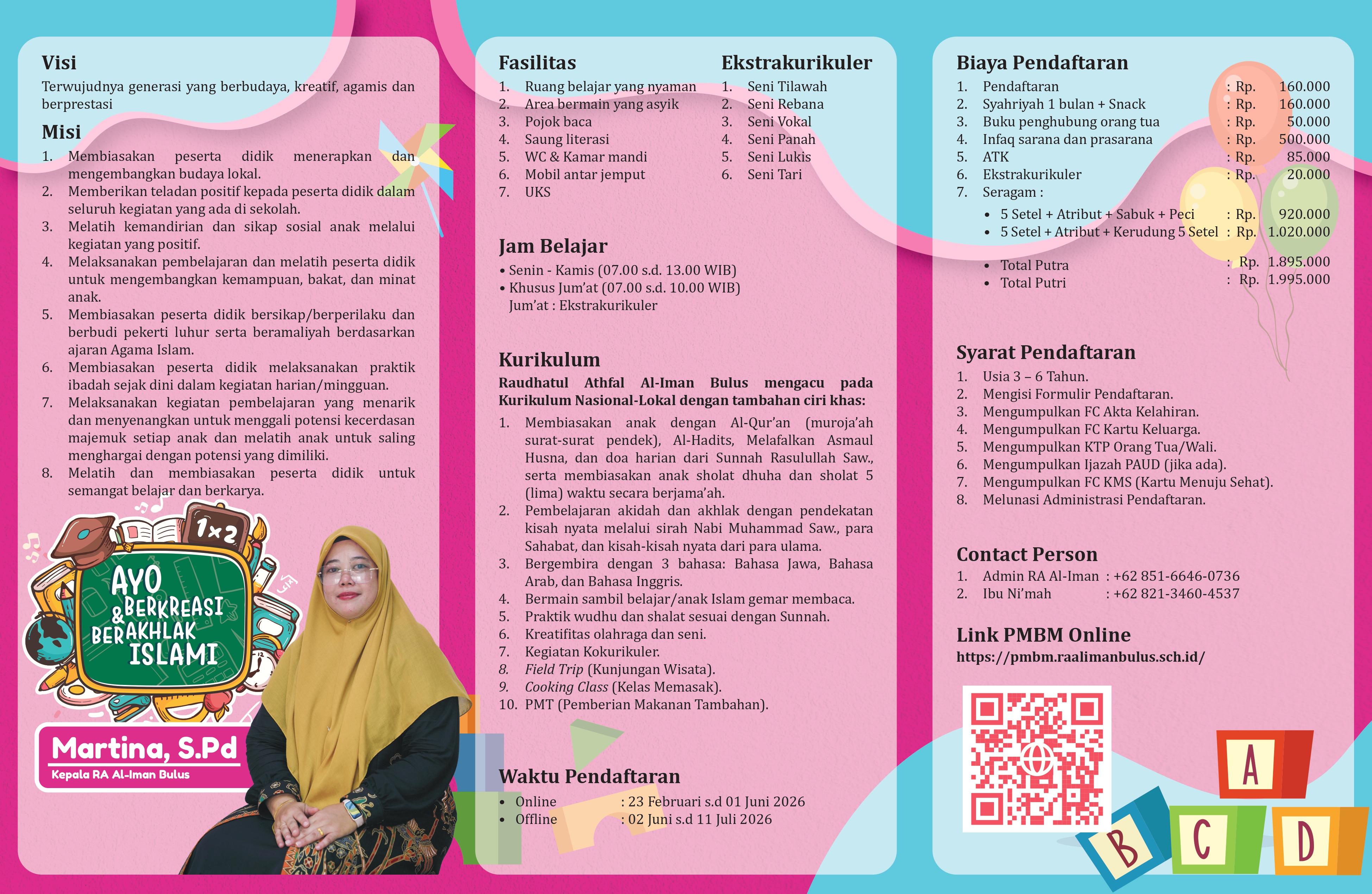 RA Al-Iman Bulus lahir sejak tahun 2016, terletak di daerah pegunungan dan perdesaan yang berdekatan dengan makam Raden Adipati Aryo Tjokronegoro Bupati pertama Kabupaten Purworejo, RA