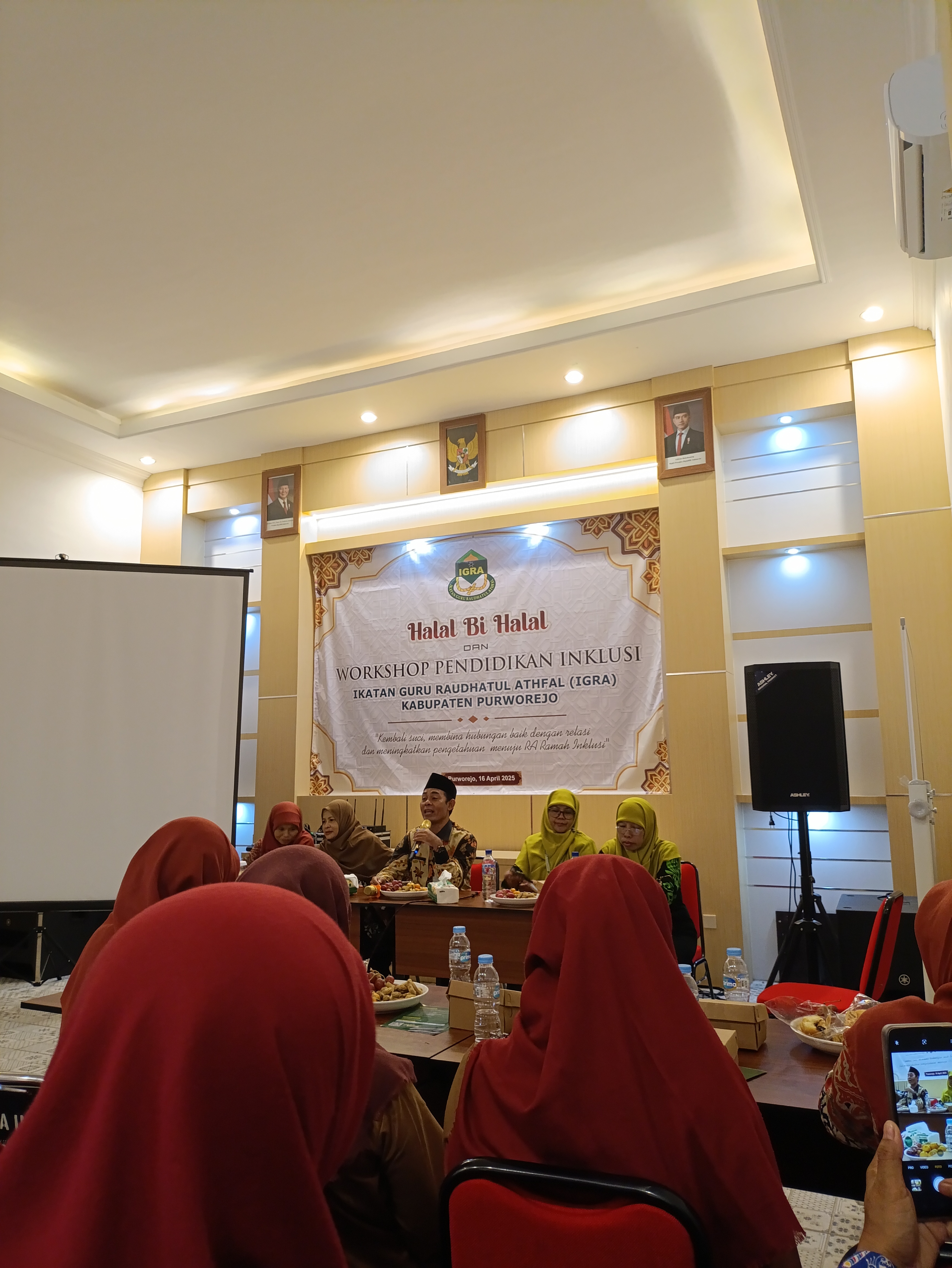 Purworejo (16/04) - Ikatan Guru Raudhatul Athfal (IGRA) Kabupaten Purworejo mengadakan acara Halal Bihalal dan Workshop Pendidikan Inklusi yang dilaksanakan di Aula Pertemuan RM. Pringsewu pada Rabu, 16 April 2025. Acara ini dihadiri oleh Kepala Kantor Kementerian Agama Kabupaten Purworejo (H. Mukhlis Abdillah, S.Ag., M.H.) dan juga Ibu Dwi Yuliarti Abdillah yang akrab dipanggil sebagai Bunda RA selaku Ketua Dharma Wanita Persatuan Kankemenag Kabupaten Purworejo.