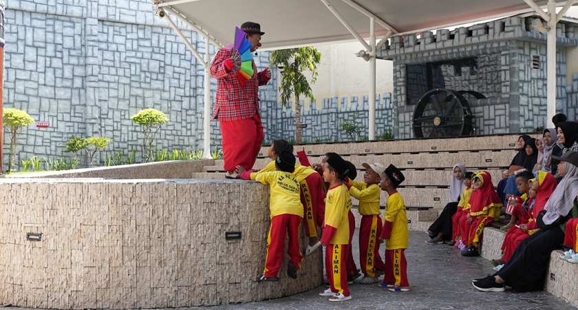 Anak-anak terlihat antusias menyaksikan pertunjukan badut