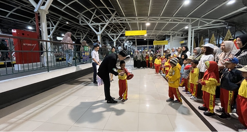Setelah anak-anak selesai belajar cara membentuk bakpia dan orang tua sudah selesai berbelanja oleh-oleh, dilanjutkan perjalanan menuju destinasi terakhir yaitu naik kereta dari Stasiun Yogyakarta menuju Stasiun Bandara YIA (Yogyakarta International Airport) Kulonprogo. Sebelum memasuki kereta, para crew dari Stasiun Yogyakarta menyambut para siswa RA Al-Iman dan sedikit memberi arahan. Setelah selesai pengarahan dari para crew Stasiun Yogyakarta, para peserta disilakan untuk memasukin gerbong kereta yang tersedia.
