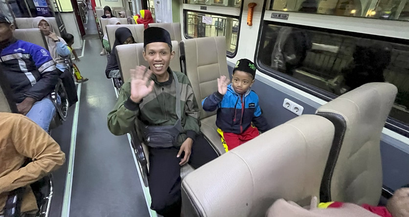 Para peserta menaiki kereta dengan tujuan akhir Stasiun Bandara YIA Kulonprogo