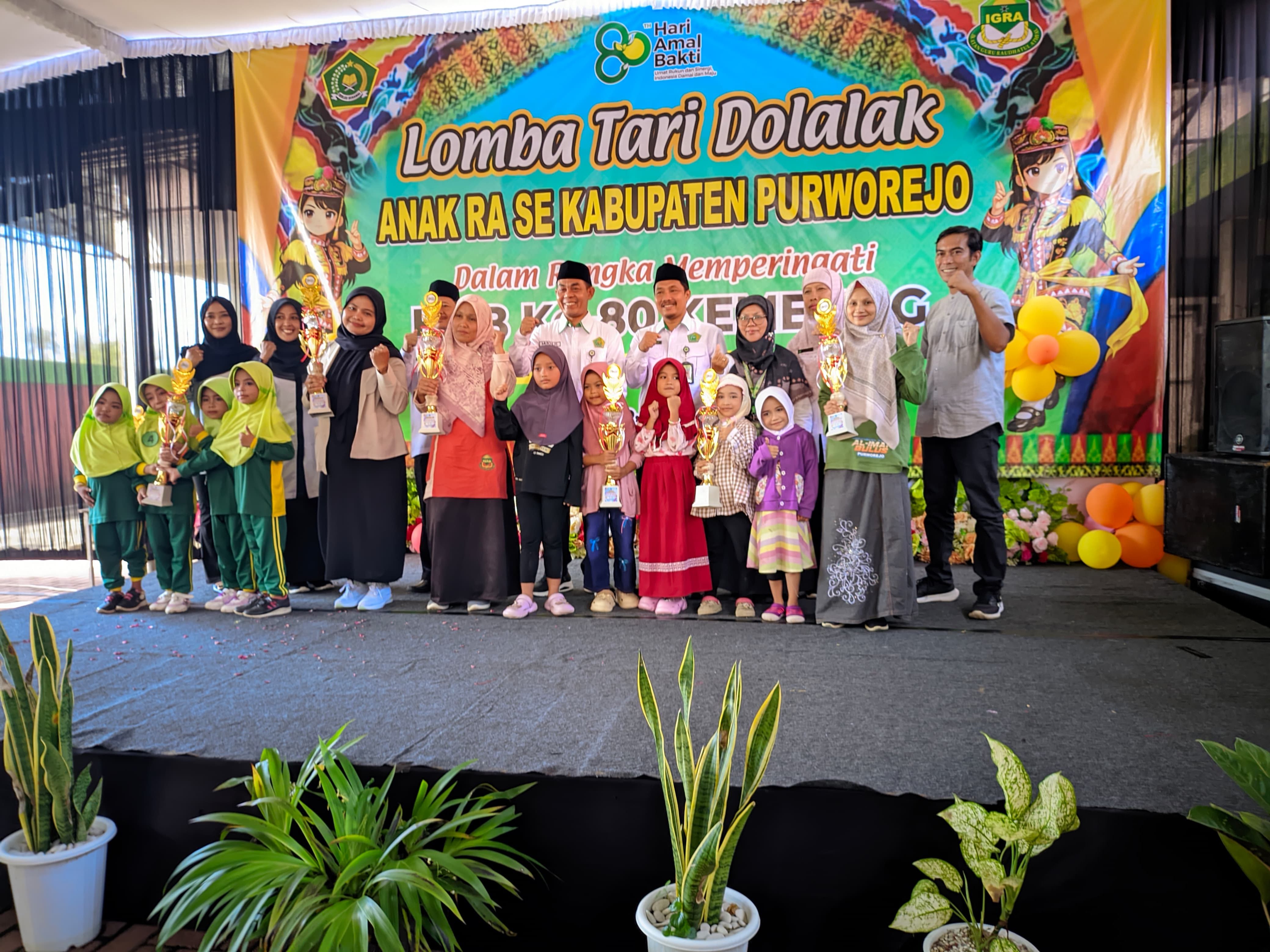 Purworejo, 06 Januari 2026 - Kementerian Agama (KEMENAG) Kabupaten Purworejo melaksanakan peringatan Hari Amal Bakti KEMENAG yang ke-80. Dalam kesempatan ini, KEMENAG Kabupaten Purworejo menyelenggarakan beerbagai lomba menarik, diantaranya lomba Tari Ndolalak Anak Raudhatul Athfal Se-Kabupaten Purworejo dan lomba Story Reading Guru Raudhatul Athfal Se-Kabupaten Purworejo.